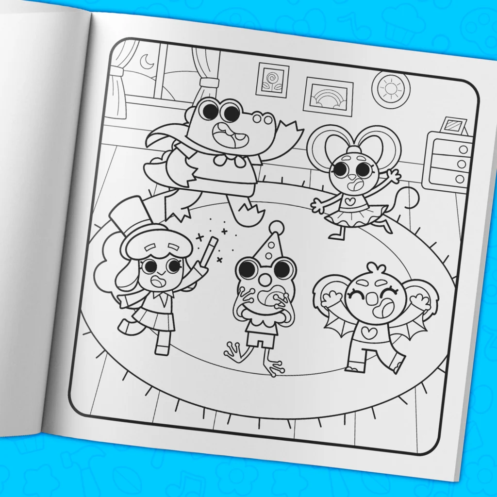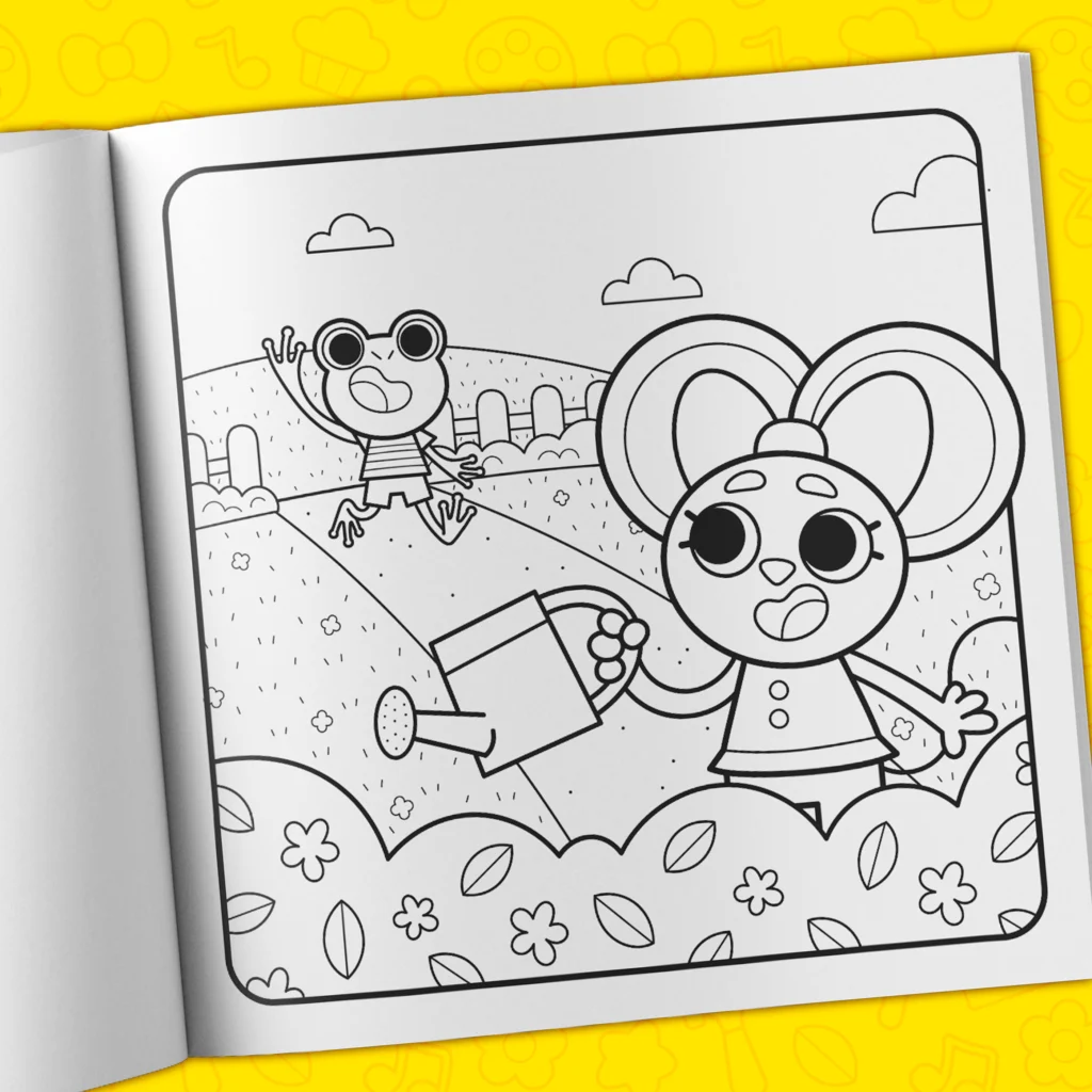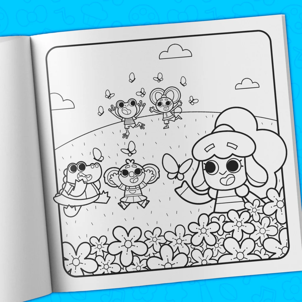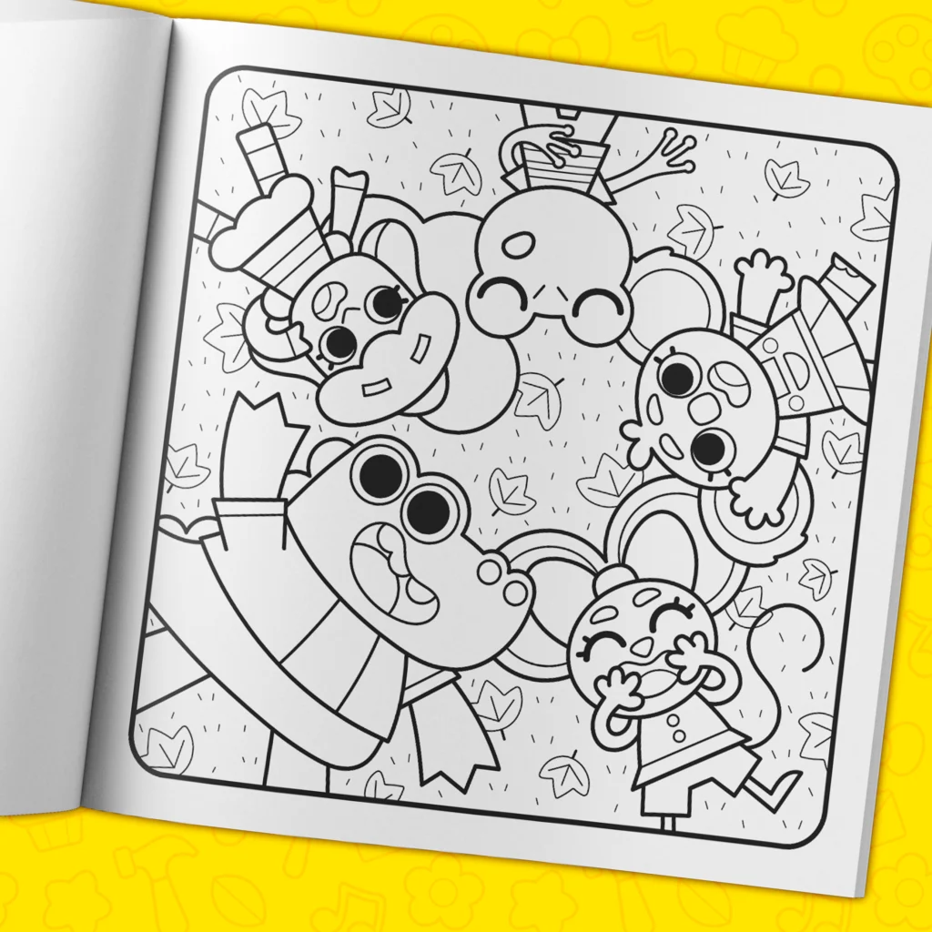 - Over 40 hand-drawn coloring pages filled with adorable characters.