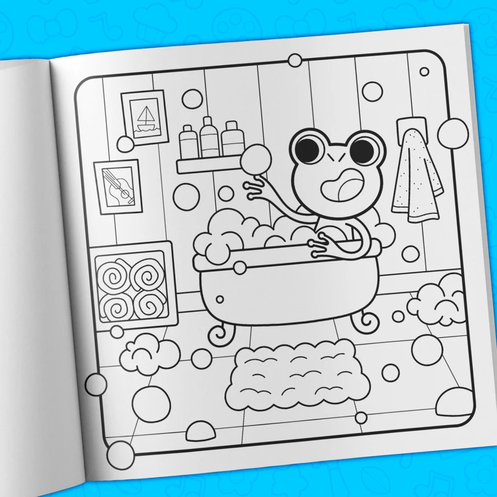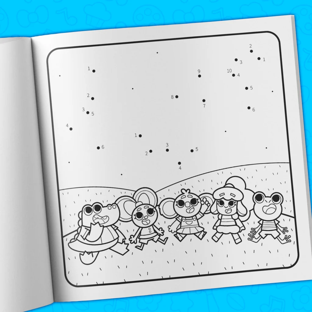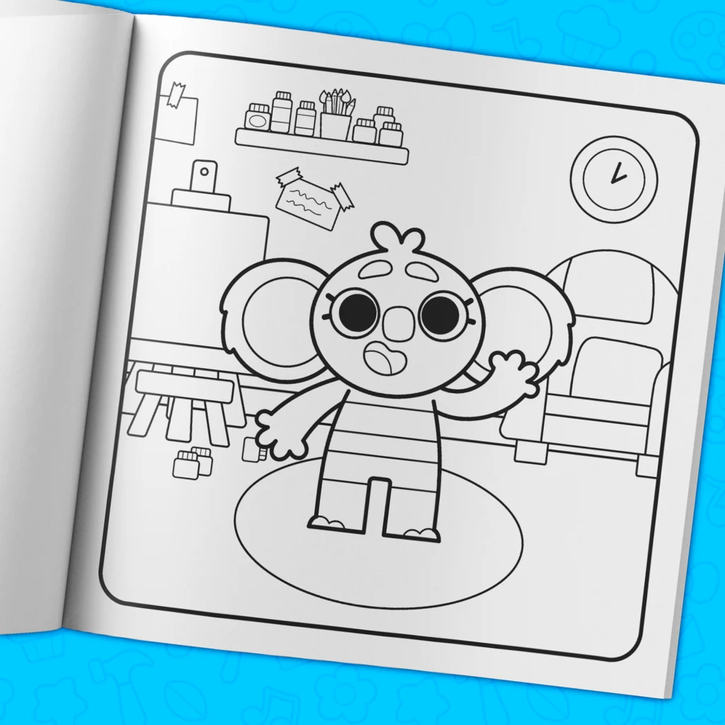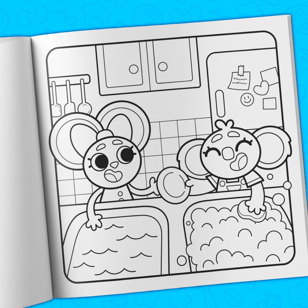 - Over 40 hand-drawn coloring pages filled with adorable characters.